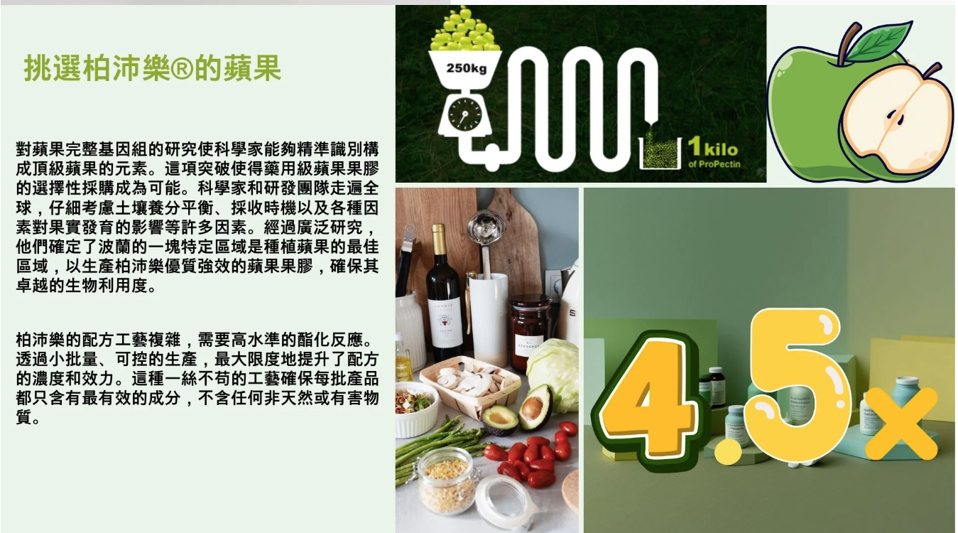 柏沛樂功效是其他蘋果果膠補充劑4.5倍