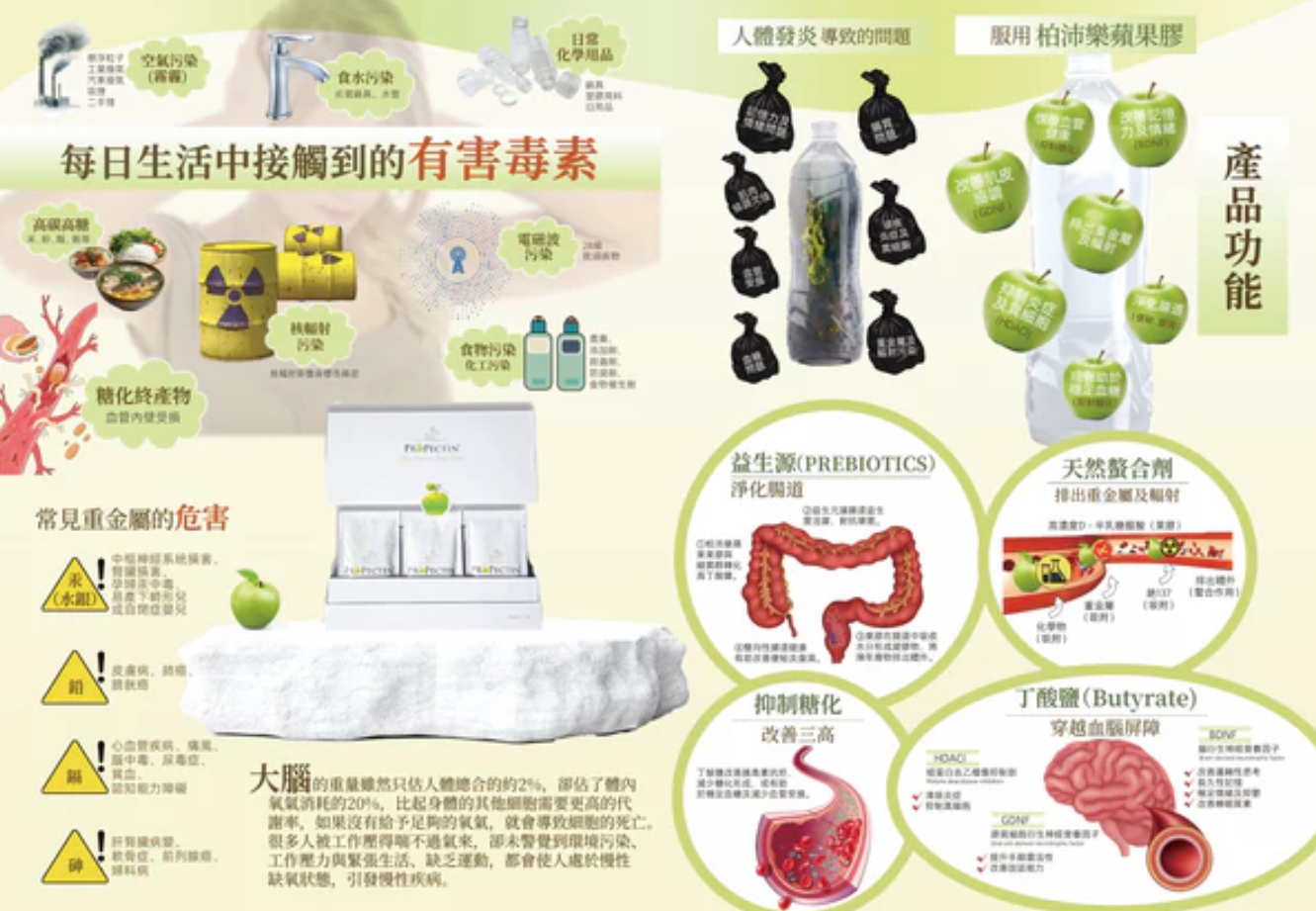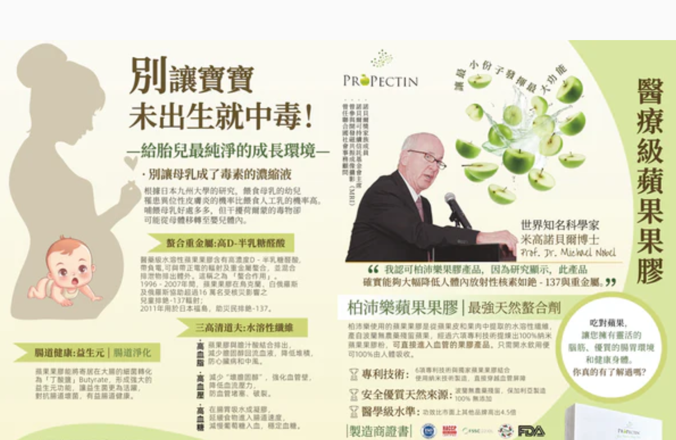 越來越多數據顯示毒素充滿在我們的日常生活環境中, 盡而對環境及我們的健康產生危害,引發各種疾病,甚至頑疾。 沒有污染物的身體就是健康的身體;重金屬、放射性粒子和其他的毒素殘留在人體內,可能引發各種疾病,ProPectin不含化學成份以及防腐劑,是100%天然醫藥級蘋果果膠,幫助身體排出污染物質, 讓我們回歸到最純淨的身體。